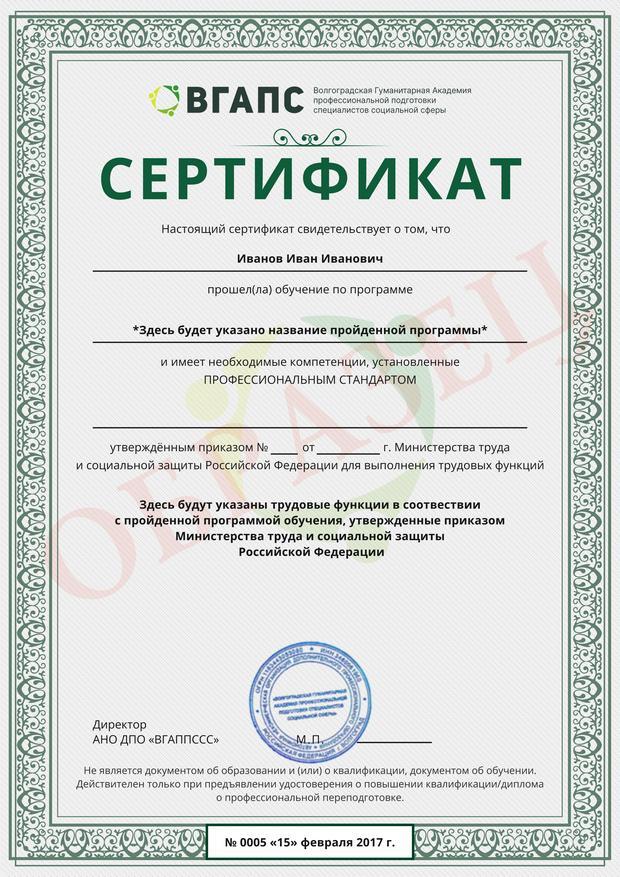 После окончания программы дополнительного профессионального образования от 16 до 250 часов Вы получите удостоверение о повышении квалификации.