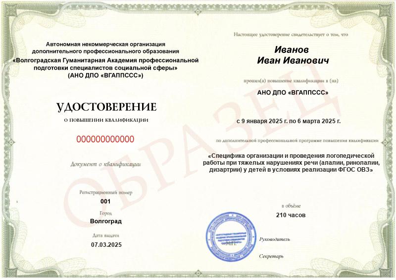 Заполненные образцы документов можно найти в описании конкретных образовательных программ на сайте АНО ДПО «ВГАППССС», а также на странице «Лицензия. Документы».