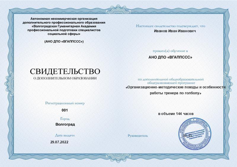 Да, АНО ДПО «ВГАППССС» выдаёт документы о квалификации установленного организацией образца, возможность выдачи образовательной организацией документов установленного образца регламентирована приказом Минобрнауки РФ №499.