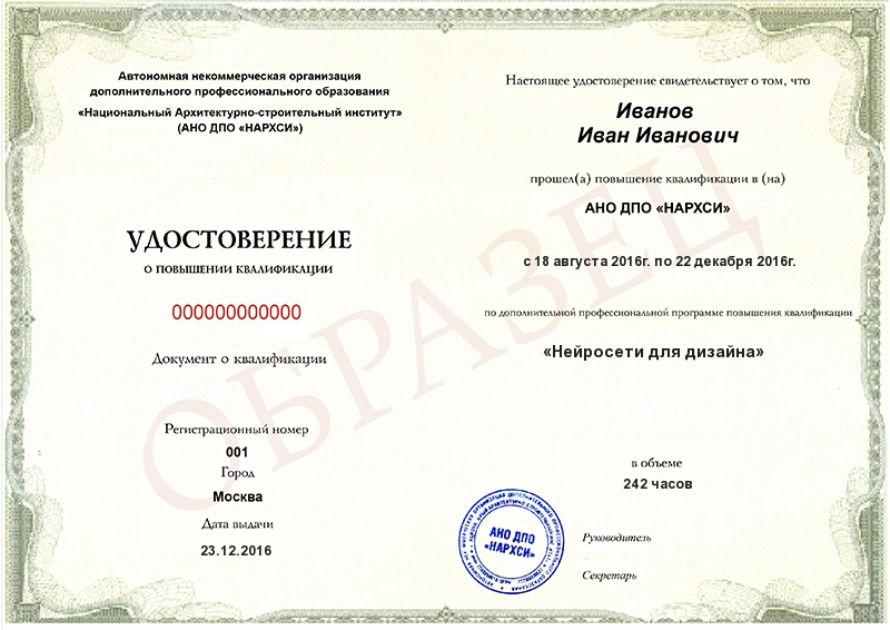 После окончания программы дополнительного профессионального образования от 16 до 250 часов Вы получите удостоверение о повышении квалификации.