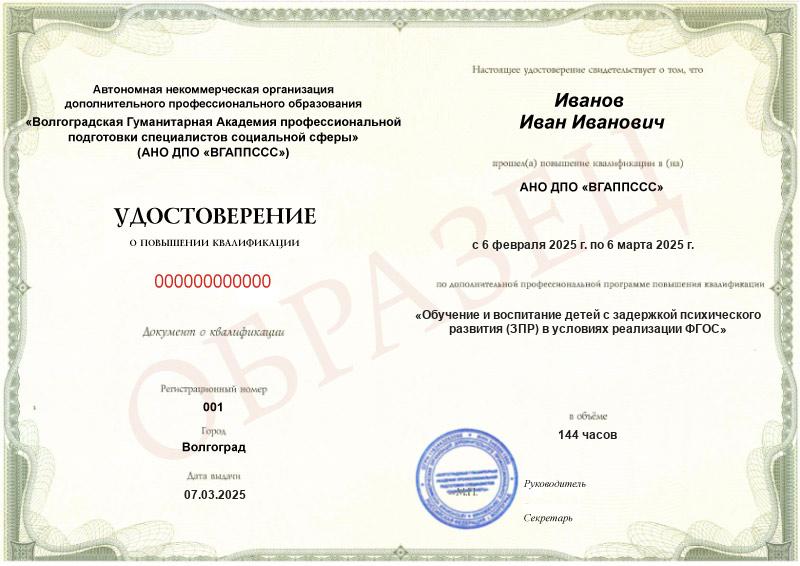 Вы получаете наиболее актуальные знания, умения и навыки, непосредственно затрагивающие вопросы профессиональной деятельности в сфере новейших научно-обоснованных и экспериментально проверенных разработок в области воспитания и обучения детей с ЗПР, а также свидетельство установленного образца, которое дает право заниматься соответствующим видом деятельности.